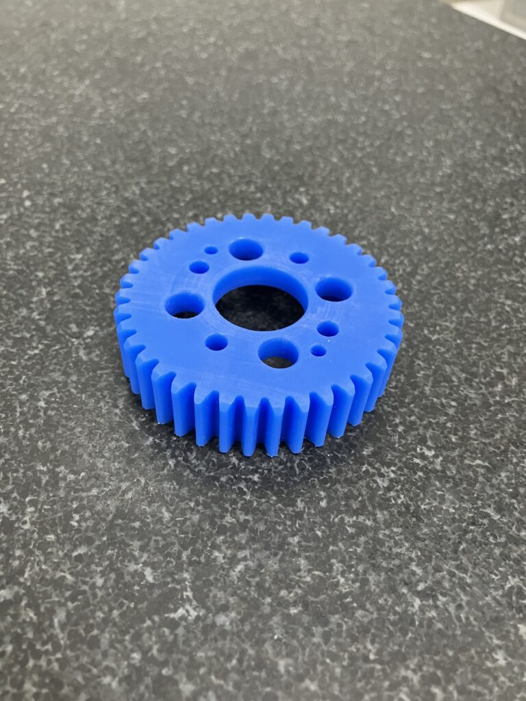 研磨機メーカー様より、軽量化とコストの削減を目的として、研磨機の内部に使用するステンレス製ギヤの樹脂化のご相談をいただき、当社にてMC901をご提案しました。MC901は、機械的強度があり、欠けにくい素材です。製造にあたっては、当社にてブランク加工を行い、歯切り盤を保有する協力会社にて歯切り加工を実施しました。